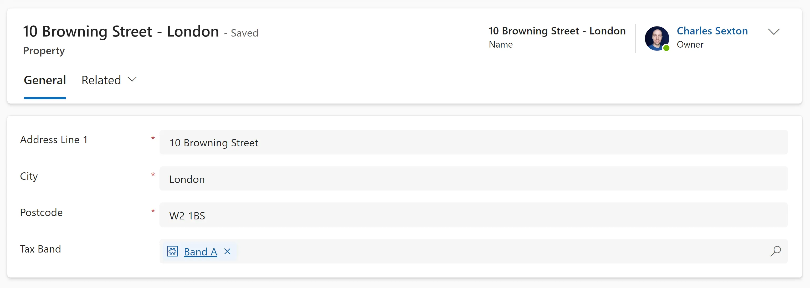 I click on save and, as soon as the property is saved to Dataverse, the user interface immediately reflects the created name.